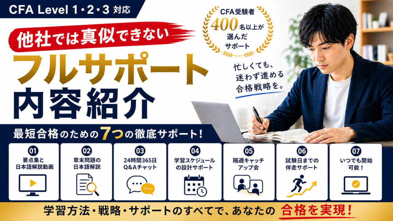 また、CFA®︎ Level 1・Level 2・Level 3のすべてに対応しており、各レベルの特性に応じた最適なサポートを提供いたします。