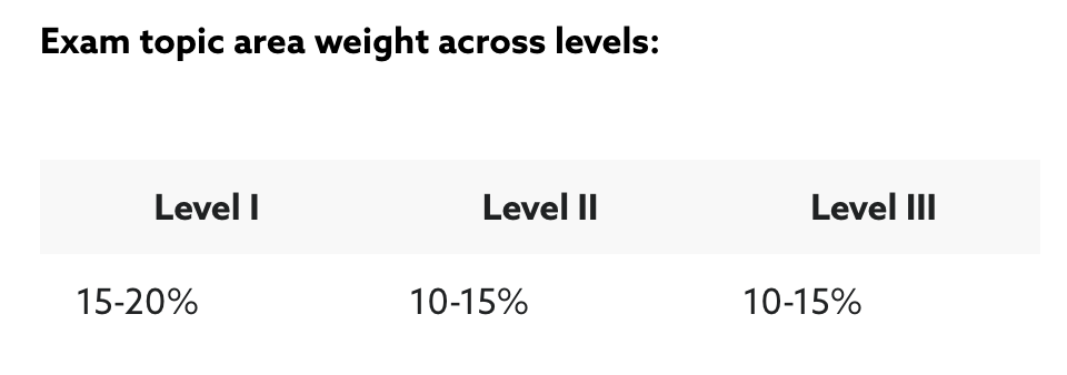 特にLevel1に関しては、多い時には全体の1/5(20%!)がEthics(倫理)で構成されるわけです。後回しにされがちな科目ではありますが、継続的に勉強しておくことが大事です。