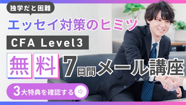 このメール講座を7日間お読みいただくと、忙しい日々の中でも、CFA Level 3 試験合格に向けた対策を今すぐにスタート頂けます。